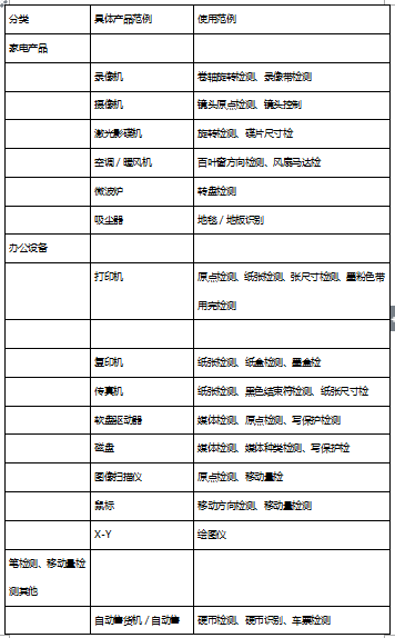微型光電傳感器在現(xiàn)實中應用如下表所示: